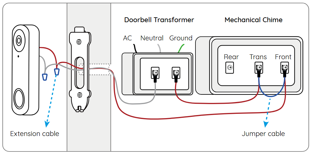 If you look a the documentation, the answer is… maybe. It depends on the electrical setup of your existing door chime. So I tried it, using the jumper cable provided with the doorbell. Two failed attempts later (one with a constantly running chime, the other with no power), I thought it wasn’t going to work. I thought the transformer in my chime must not be providing enough power for the doorbell. Helpfully, the documentation’s terminology about the connections and the terminology used by my chime did not match (the following is from the doorbell manual):